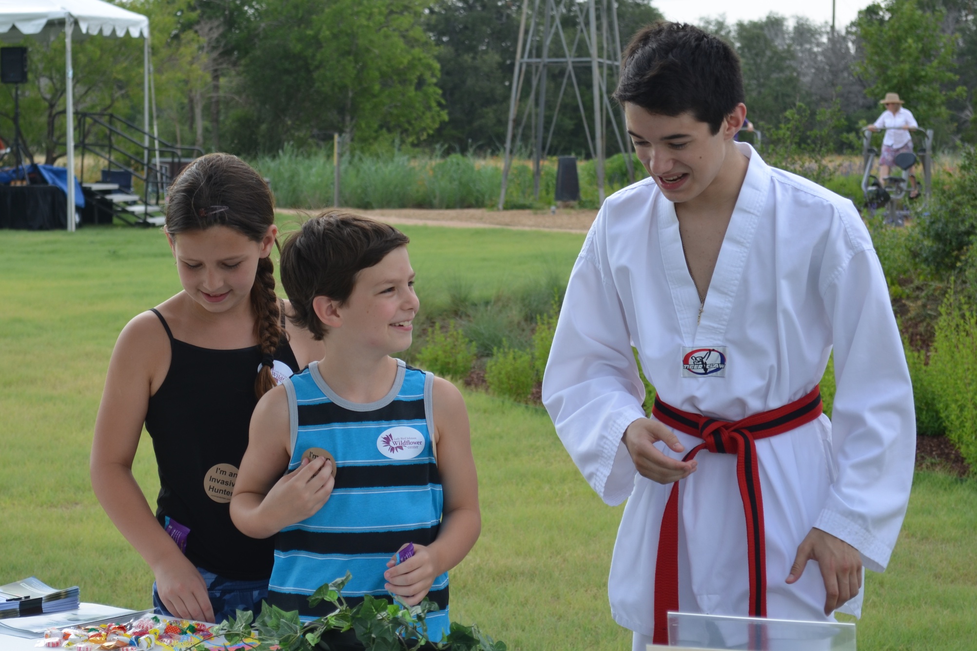 Thanks Mr. Justin Bush, invasive species coordinator for the Wildflower Center, for the invasive species books and brochures that I could pass out to kids. This young invasive hunter talked with me about the invasive species that he saw around Austin.