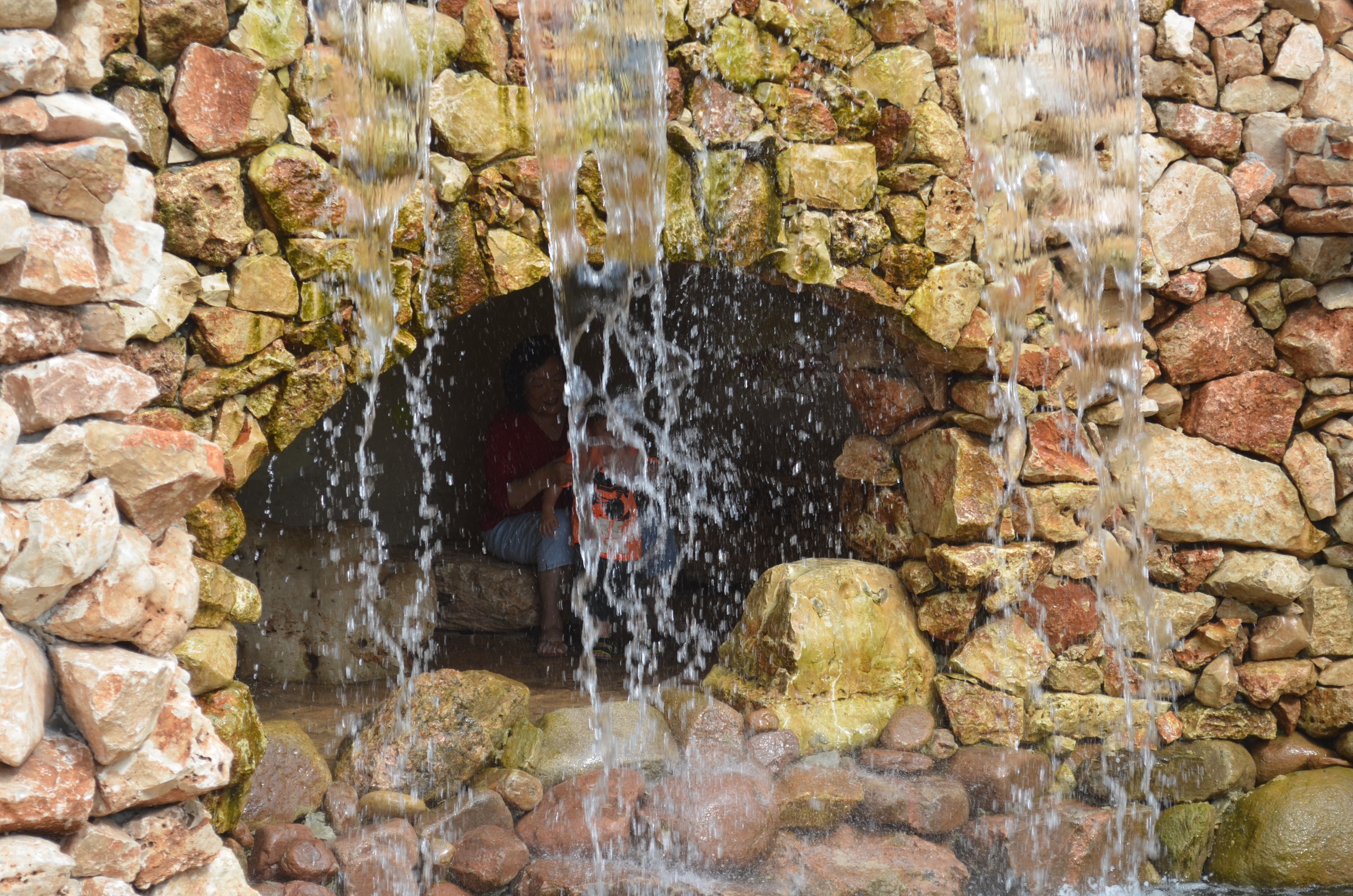 The waterfall in the Hill Country Grotto that’s part of the Wildflower Center’s Luci and Ian Family Garden is a great place to hide.